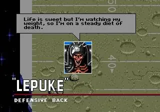 Next comes the other monster football game people often think of, Mutant League Football for the Genesis. This game was published by EA, who already had a lock on football games with the incredibly popular Madden series. MLF came out in 1993 and I've seen conflicting reports about the engine that was used. The Wikipedia entry said it was based on the Madden '93 engine, but other reports seem to say it was a unique engine made for the game. Either way, it got pretty good reviews (EGM) and sold well. There was a hockey variant that came out and work started on a basketball game set in the same universe but it was ultimately cancelled.